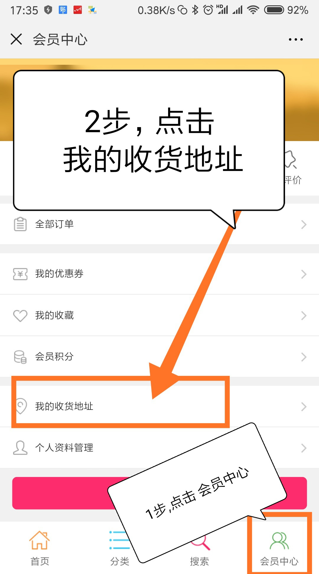 第一步 新用戶首先要輸入收貨地址,操作如下圖